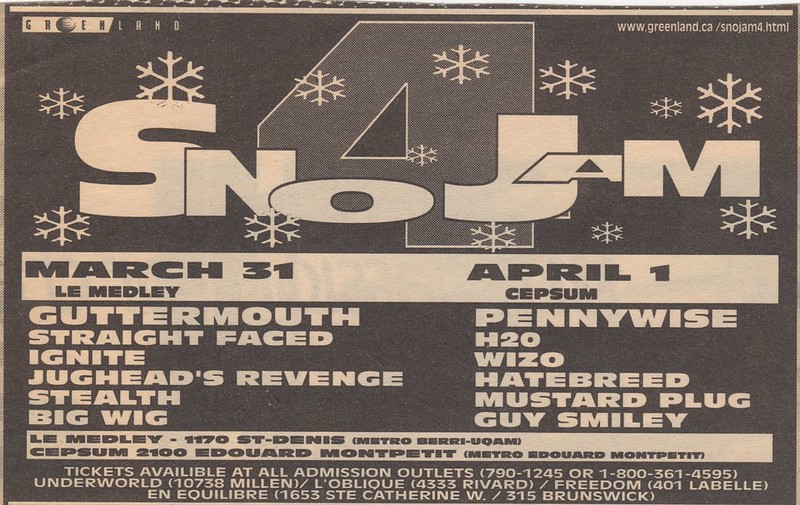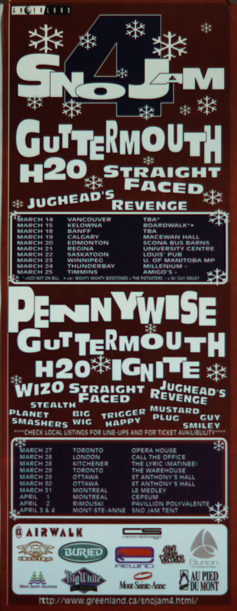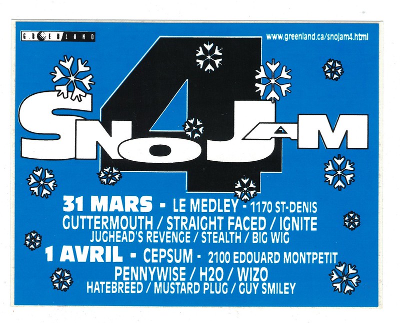 SNO JAM 4 GUTTERMOUTH STRAIGHT FACED IGNITE JUGHEAD’S REVENGE STEALTH BIG WIG PENNYWISE H2O WIZO HATEBREED MUSTARD PLUG GUY SMILEY