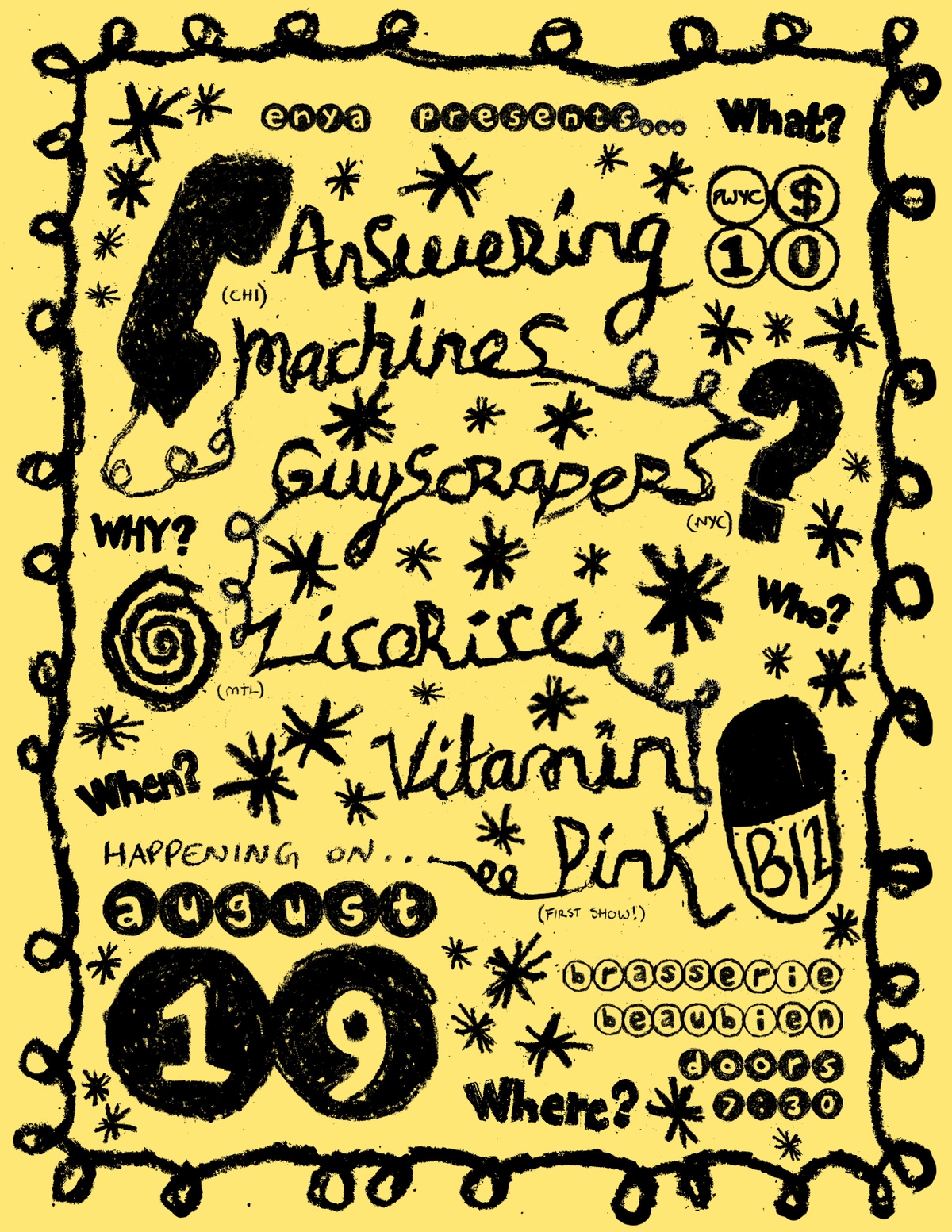 ANSWERING MACHINES GUYSCRAPERS LICORICE VITAMIN PINK