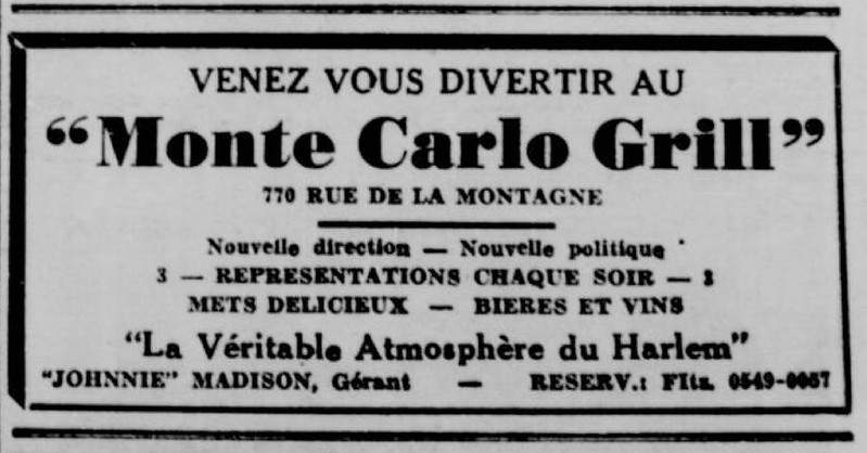 Cabaret mythique de la Petite-Bourgogne (1940–1953), moteur du « Harlem du Nord » et berceau du bebop canadien. Lieu d’attache de Louis Metcalf et carrefour majeur du jazz montréalais.