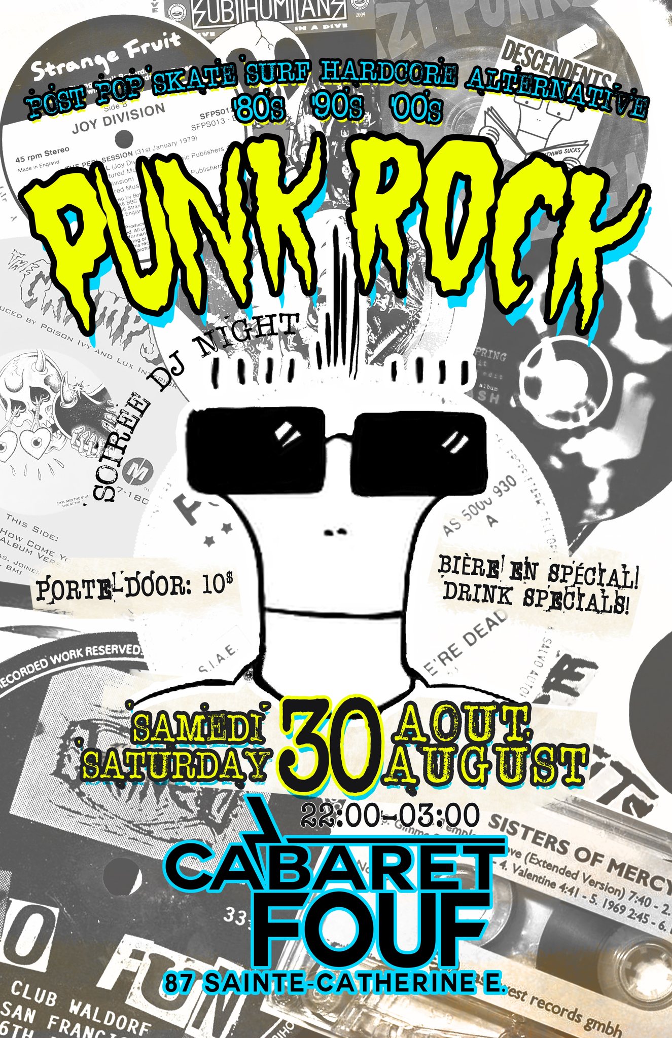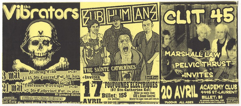Les Foufounes Électriques (1983-) était auparavant connu sous les noms de Clochards Célestes (1980-1982) et Zoobar (1982-1983). L’établissement se trouve au 87 rue Sainte-Catherine Est à Montréal.