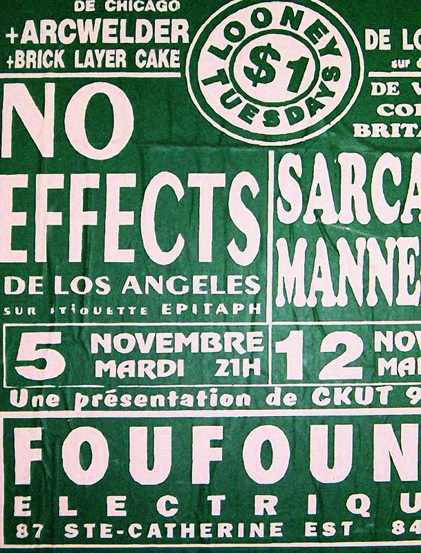 Les Taches, 14-15 novembre 1983, Foufounes Électriques, Montréal. Crédit flyer: Alain Karon