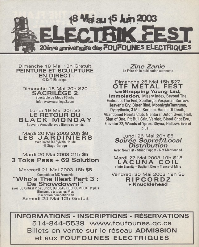 [11] Emmanuel Delacour, « Un phare de la scène alternative à Montréal: 30 ans des Foufounes électriques », 24h Montréal, 27 février 2013
