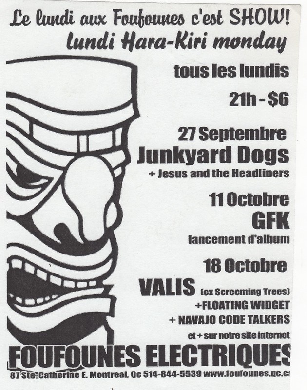 Nirvana, 17 avril 1990, Foufounes Électriques, Montréal. Crédit flyer: Billy Mavreas