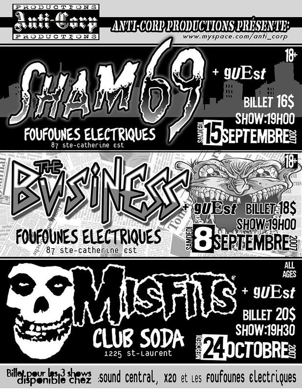 SHAM 69 RIPCORDZ ESCLAVES SALARIÉS THE UNCIVILIZED THE BUSINESS THE WEDNESDAY NIGHT HEROES LA GACHETTE MISFITS BALZAC GUTTER DEMONS