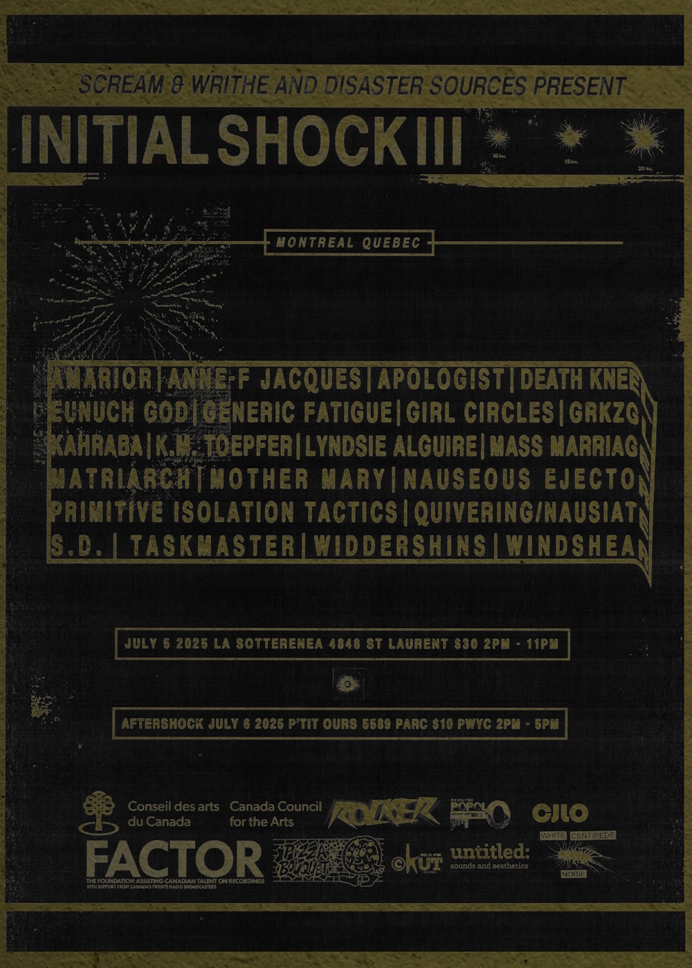 - Thelma and Moonface, CJ Wiley (Big Gay Night), Takako Minekawa, Wolf Eyes, Lesbians on Ecstasy, etc.