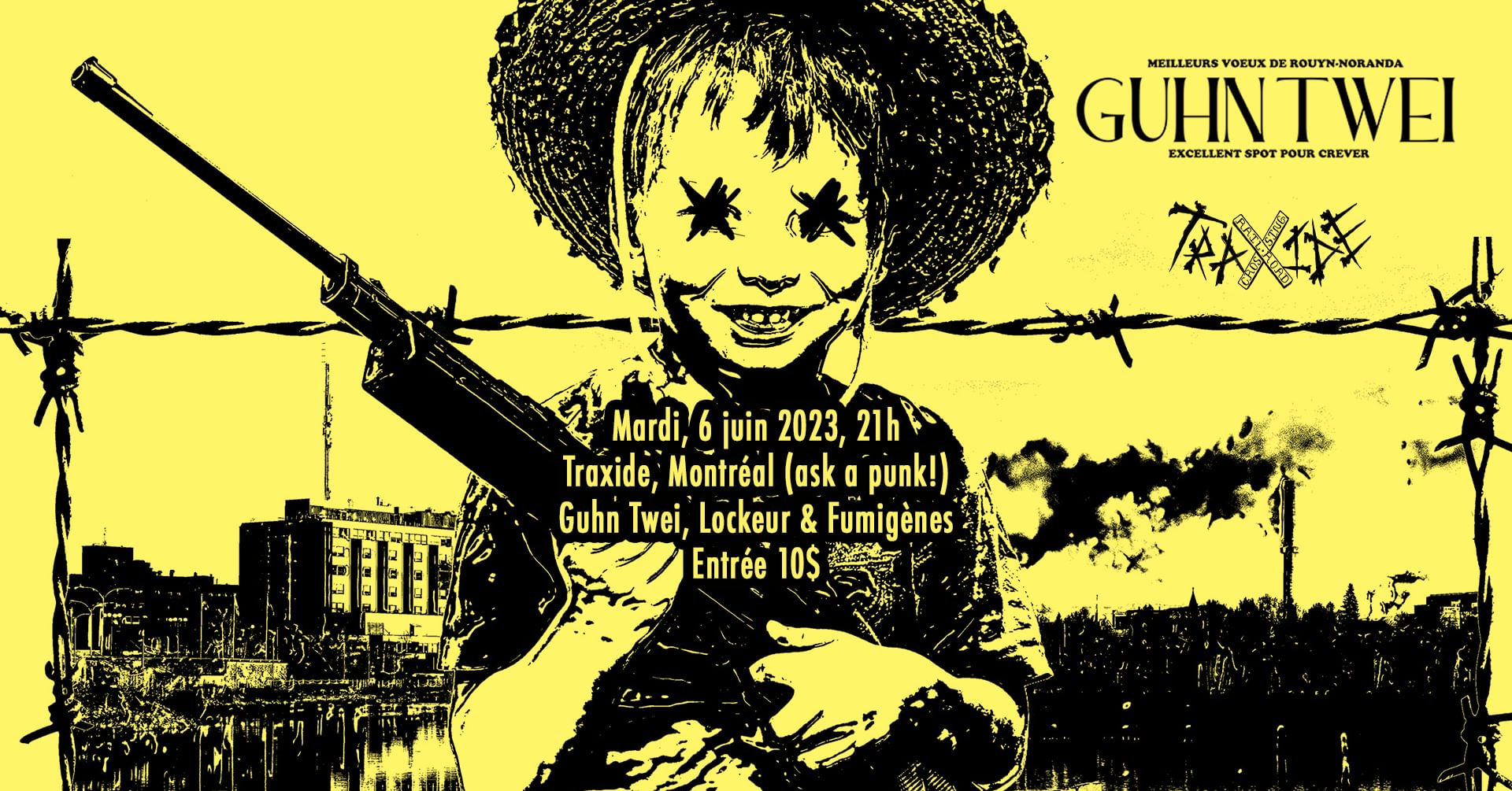 Le TraXide, anciennement connu sous le nom de Fattal, est actif depuis 2010 à St-Henri, Montréal. Ce lieu emblématique, devenu un refuge pour les punks locaux et itinérants, accueille des visiteurs de partout au Canada, des États-Unis et du Mexique. Offrant un espace ouvert et sécuritaire, il est décrit par Paul Gott (Ripcordz) comme « l’ultime scène punk/métal underground ».