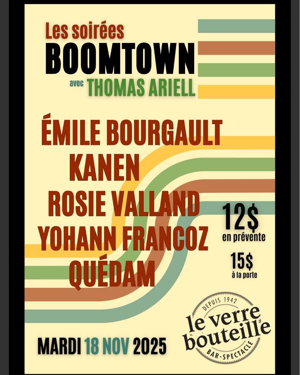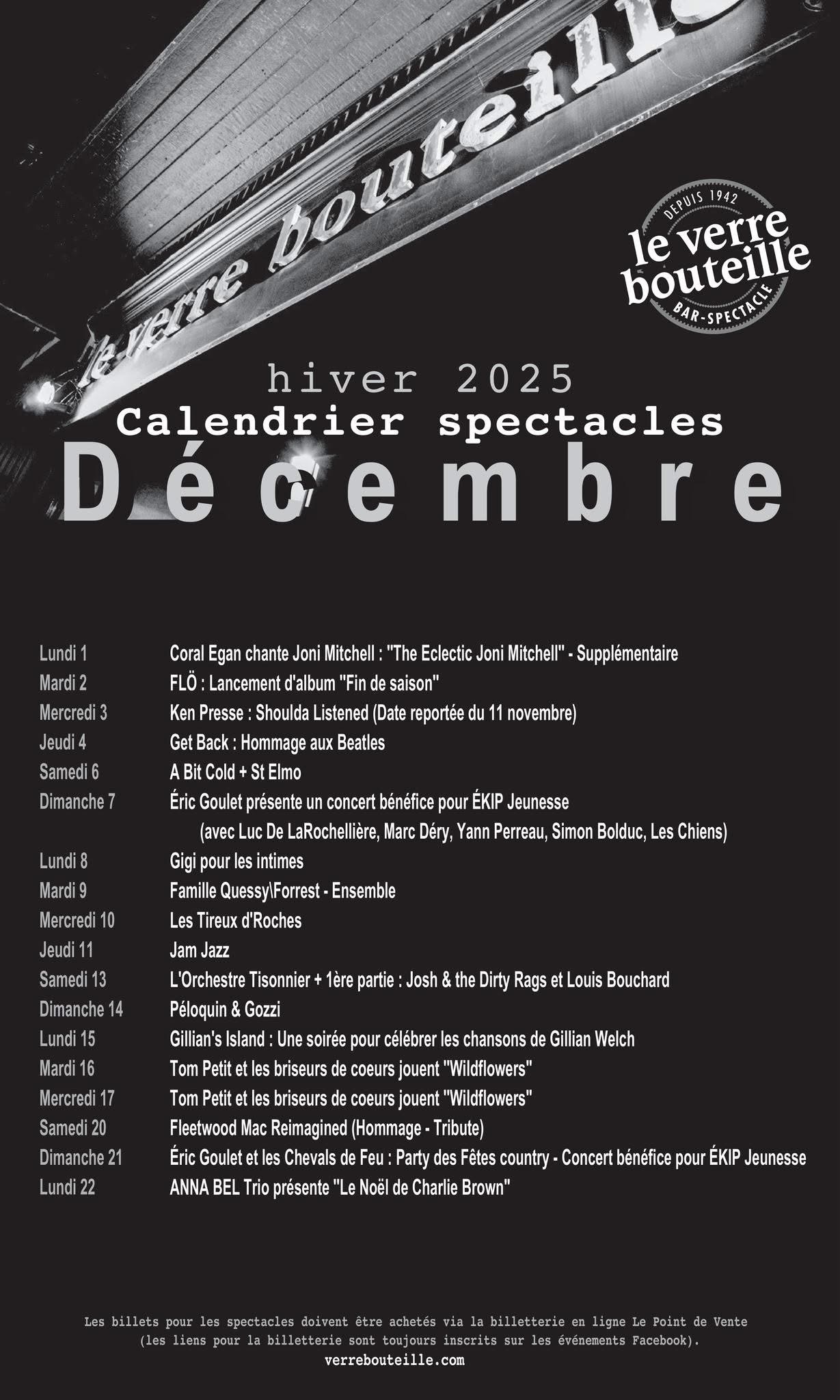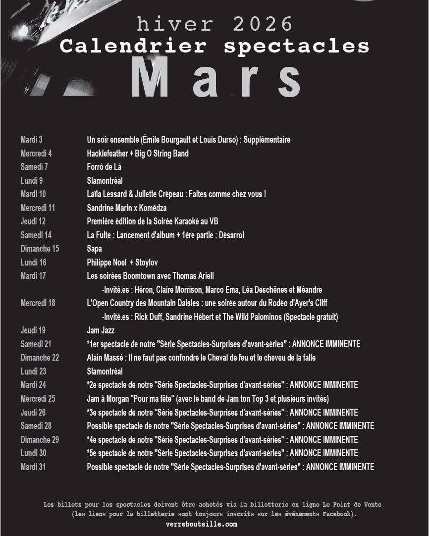 - Veillées d’Amélie (Amélie Veille & Didier Morissonneau) : la série déménage au Verre Bouteille — signal fort du lieu comme QG de la chanson d’auteur.
